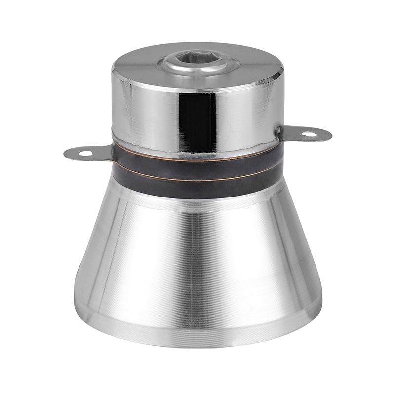 超聲波換能器(振子)是由壓電陶瓷的壓電效應實現(xiàn)電能轉換為機械能(超聲波振動),并通過聲阻抗匹配的前后輻射蓋塊進行放大的器件。超聲波清洗是通過超聲波換能器(振子)產(chǎn)生的超聲波振動,在水中發(fā)生空化效應對清洗件上的污物產(chǎn)生的機械起剝落作用, 同時能促進清洗液與污物發(fā)生化學反應, 達到清洗物件的目的。