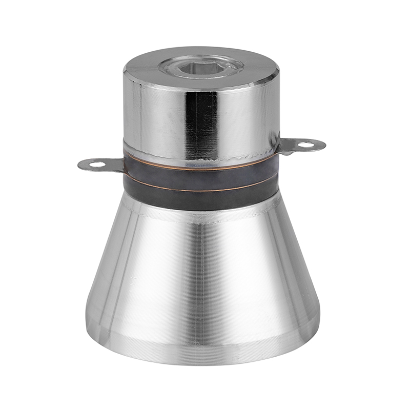 超聲波換能器(振子)是由壓電陶瓷的壓電效應(yīng)實(shí)現(xiàn)電能轉(zhuǎn)換為機(jī)械能(超聲波振動(dòng)),并通過聲阻抗匹配的前后輻射蓋塊進(jìn)行放大的器件。超聲波清洗是通過超聲波換能器(振子)產(chǎn)生的超聲波振動(dòng),在水中發(fā)生空化效應(yīng)對清洗件上的污物產(chǎn)生的機(jī)械起剝落作用, 同時(shí)能促進(jìn)清洗液與污物發(fā)生化學(xué)反應(yīng), 達(dá)到清洗物件的目的。